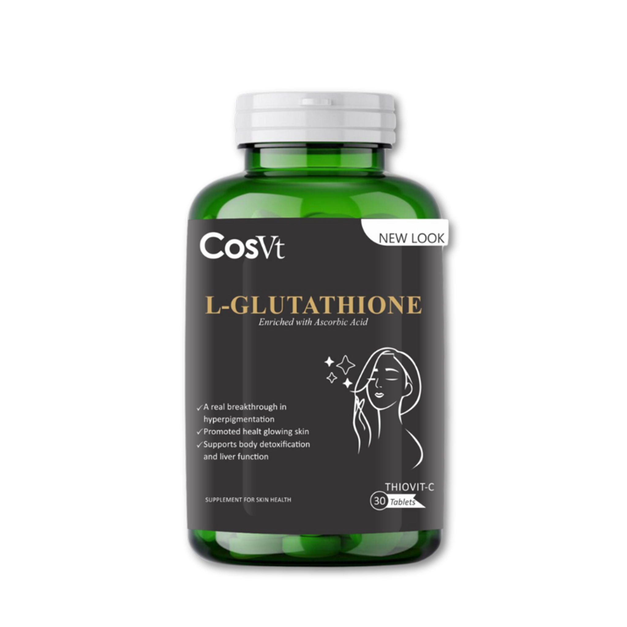 Achieve a radiant, glowing complexion with COSVT's L-Glutathione Supplement, formulated with 500 mg of L-Glutathione and 5 mg of Ascorbic Acid. This powerful antioxidant blend is designed to support overall skin health, promoting a brighter and more even skin tone while enhancing your body's natural detoxification processes.